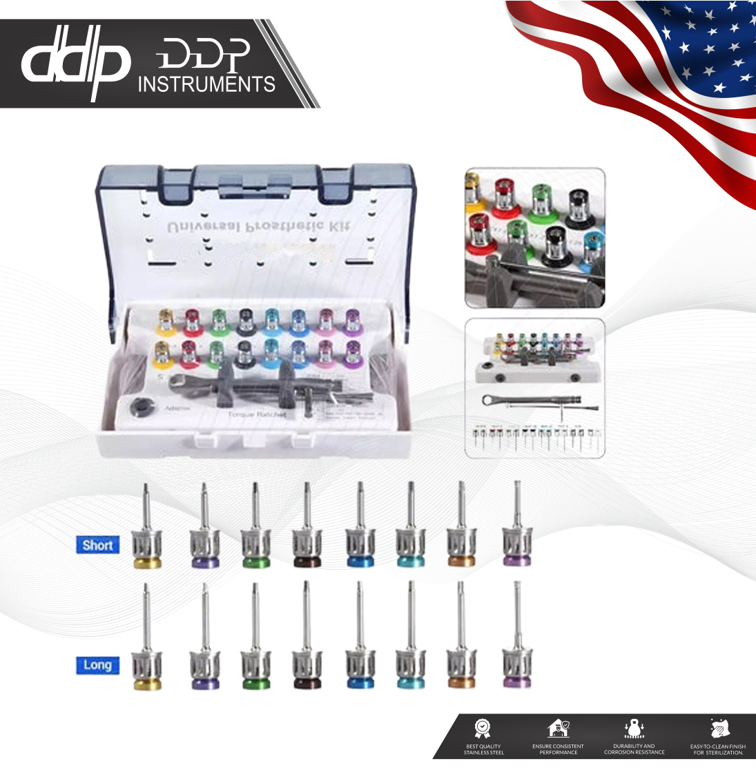 Enhance your dental implant procedures with the Green Medical Dental Universal Implant Prosthetic Kit. This comprehensive set includes a torque wrench and a set of screw drivers, designed to meet the needs of dental laboratory, dentistry, endodontics, and endocrinology disciplines. Crafted from high-grade stainless steel, the instruments are durable and fully autoclavable up to 135℃, ensuring reliable performance in a variety of clinical settings. The kit’s simplified structure and comfortable design facilitate easy handling and use, while the torque values range from 10–70 N·cm, catering to a variety of implant sizes. The package comes with both long (25 mm) and short (20 mm) drivers, along with hexagonal drivers in sizes from 0.9mm to 1.4mm, all neatly organized in a box for convenient storage and transport, this set does not include any modified or custom bundle instruments.